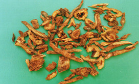【别 名】 腐肠、黄文、妒妇、虹胜、经芩、印头、内虚、空肠、子芩、宿芩、条芩、元芩、土金茶根、山茶根、黄金条根 【药用部位】 为唇形科植物黄芩的根。 【成 份】 黄芩根含黄酮类化合物:黄芩素,黄芩新素,黄芩甙(baicalin),汉黄芩素,汉黄芩甙,木蝴蝶素A,7-甲氧基黄芩素,黄芩黄酮,二氢木蝴蝶素,白杨素等有效成分。 【功能主治】 泻实火,除湿热,止血,安胎。治壮热烦渴,肺热咳嗽,湿热泻痢,黄疸,热淋,吐、衄、崩、漏,目赤肿痛,胎动不安,痈肿疔疮。 ①《本经》:'主诸热黄疸,肠澼,泄利,逐水,下血闭,(治)恶疮,疽蚀,火疡。'