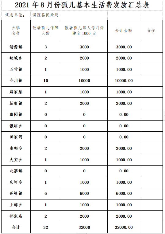5.项目建设期限:每月10日前打入农户一拆统 6.项目预期目标:保障孤儿基本生活 7.主管部门及责任人:县民政局 局长李文忠 8.受益农户名单:由乡镇负责公示到户 监督电话:41322810 2021年8月份孤儿基本保障金发放花名册。.xls