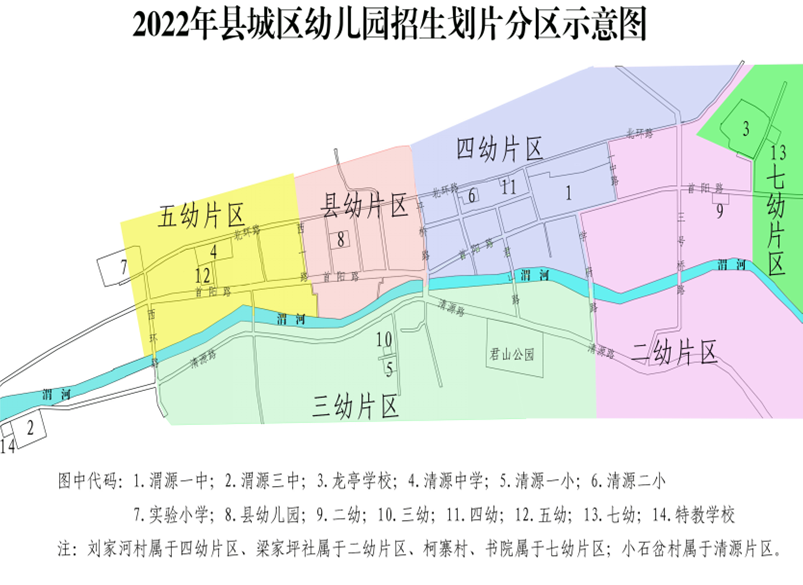 为了全面贯彻落实《中华人民共和国教育法》《幼儿园管理条例》和《幼儿园工作规程》,进一步提高我县学前教育管理水平、规范办学行为,现就2022年全县幼儿园招生工作安排如下,请遵照执行。 一、招生原则 1.坚持“就近入园、划片招生”的原则。依据免试就近入园原则,农村公办幼儿园按自然村招生,城区幼儿园按划片招生范围招生。就近安排学生入学,确保辖区内符合入学条件的适龄儿童全部就近入园,并有相应的学籍。 2.所有幼儿园的班额,小班不得超过25人,中班不得超过30人,大班不得超过35人。 二、招生对象 各幼儿园片区内户籍以及符合政策要求年满三周岁(2019年8月31日前出生)未入学的适龄儿童。 三、户籍要求 幼儿园新生户籍必须是在2022年1月1日后无变动的。 四、幼儿园划片安排 (一)县幼儿园、县第二幼儿园、县第三幼儿园、县第四幼儿园、县第五幼儿园、县第七幼儿园招生范围 1.户籍在县城区清源社区、新城社区和清源镇上磨村、城关村、北关村、柯寨村柯寨社、书院社相应片区的居民子女(该类幼儿父母至少一方与子女须在同一户籍,否则按父母户籍地对待)。 (1)片区内人户房一致(即:户籍与住房在同一片区内)的,相应片区幼儿园须优先接收。 (2)片区内人户房不一致(即:有片区内户籍,有住房但住房不在同一片区范围内)的,按就近入学、家长自愿原则在户籍或住房所在片区内入园,相应幼儿园予以接收。 (3)家长须提供真实有效的户口簿原件、复印件及房产证或购房合同及发票,发票缴款金额为房产总额的30%,幼儿园统一送相关部门进行审查核验。 2.户籍不在规定范围内的县城区行政事业单位工作人员的子女(该类幼儿居住地在县城相应片区的,需提供家长工作调动文件、户口簿原件、复印件及房产证或购房合同及发票,发票缴款金额为房产总额的30%),幼儿园按片区内学生接收。 户籍不在规定范围内的拆迁安置户子女(居住地在县城相应片区的,需提供户口簿原件、复印件及土地使用证或拆迁安置合同),拆迁户按实际安置地址就近入园,幼儿园按片区内接收。 3.片区内招生任务(前2类)完成后,如还有空余学位,优先安排接收外省、外市、外县户籍的随迁子女,随迁子女监护人必须在县城经商且在片区内有固定住所(该类少儿需提供营业执照、购房或半年以上租房合同,已购房的须提供房产证或购房合同及正式发票,发票缴款金额为房产总额的30%)。 4.对于个别特殊困难情况的学生(孤儿、家庭重大伤亡变故等),因监护人在相应片区,先由乡镇、村社出具证明,加盖公章并由教育局调查核实后按监护人的申请统筹安排学校,各幼儿园无条件接收。 5. 根据《司法部办公厅 教育部办公厅关于公安机关实行司法行政机关人民警察英烈和因公牺牲伤残人民警察子女教育优待的通知》(司办通〔2020〕32号)、《甘肃省教育厅 甘肃省军区政治部关于印发甘肃省军人子女教育优待规定的通知》(政联〔2012〕84号)、《甘肃省应急管理厅 甘肃省教育厅关于印发甘肃省国家综合性消防救援队伍人员子女教育优待规定的通知》(甘应急人事〔2019〕41号)等相关文件精神,对符合条件的相关人员子女由县教育局根据家长意愿统筹安排学校,各幼儿园无条件接收。 相关材料由县公安局、人武部、消防救援队于当年6月30日前以正式函件提交县教育局。县教育局不单独接纳其他任何单位的函件和个人申请。 6.本县片区外户籍在县城区务工、经商人员的子女,原则上安排到户籍地幼儿园入园,不得择园。如在县城有半年以上租住房、营业执照或实际购房者,可在7月10日-7月20日登录“渭源县幼儿园招生报名系统”注册申请,“报名学校”中选择“随机分配”一项、不得择园(若公办幼儿园有空余学位,该类幼儿会安排在有空余学位的公办幼儿园中;若公办幼儿园学位已满,该类幼儿会安排在民办幼儿园)。7月21日-7月25日公布分配结果,8月23日-8月25日执户口簿、营业执照等相关材料到分配的幼儿园报名。各公办幼儿园不得违规私自招收此类学生。 该类幼儿需提供营业执照、务工证明、房产证或购房合同及正式发票,发票缴款金额为房产总额的30%,优先安排有房产证的。租住房的需提供半年以上租住房合同、营业执照、务工证明。 城区幼儿园具体划片范围见附件1。 7.县第二幼儿园本学年度(2021-2022学年度)小班、中班居住于县第七幼儿园片区内的幼儿,根据家长意愿一律转入县第七幼儿园。 (二)其他乡镇公办幼儿园(行政村幼儿园)招生范围 1.具有当地乡镇户籍且符合入园条件的适龄儿童。 2.户籍不在规定范围内的当地乡镇事业单位工作人员的子女(居住地在乡镇相应片区的,需提供家长工作调动文件、户口簿原件、复印件及固定住所居住证明),相关幼儿园按片区内学生接收。 3.片区内招生任务(前2类)完成后,如还有空余学位,优先安排接收外省、外市、外县户籍的随迁子女,随迁子女监护人必须在当地乡镇经商或务工且有固定住所(需提供营业执照、务工证明、购房或租房合同)。 4.对于个别特殊困难情况的学生(孤儿、家庭重大伤亡变故等),因监护人在相应片区,先由乡镇、村社出具证明,加盖公章并由各学区调查核实后统筹安排幼儿园,各幼儿园无条件接收。 5.本县户籍在当地乡镇政府所在地经商、务工人员的子女,原则上安排到户籍地幼儿园入园。如在经商、务