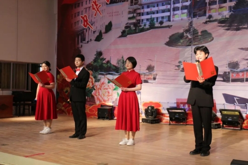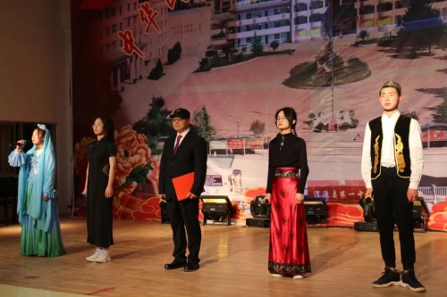 我校去甘南州碌曲县藏族中学支教教师代表王雪铧老师和四位少数民族学生代表上台分享了他们的故事,他们用朴实的言语,真挚的话语,表达了人人珍惜民族团结、人人维护民族团结的美好夙愿。