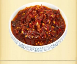 2.腌辣酱 秋天来了,辣椒成熟了,辣椒酱便是渭源人饭桌上最常见的一道简单而食用方便的美菜,可用做下饭菜,也可夹馍吃,味道美极了,深受渭源人的喜爱。 腌制前要将红辣椒洗净、去柄、晾干水分。再将晾干的辣椒切丁。把芝麻、花生用油炒熟,花生捣碎去皮,鲜姜剁末。然后将切好的辣椒丁、芝麻、花生、姜末和在一起搅匀,再根据自己的口味加入适量干黄酱、老干妈、食盐搅拌均匀,烧沸适量胡麻油炝拌,色香味俱全的辣椒酱就腌制成了。