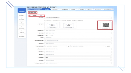 14.在“经营者信息”页面,导入、用微信或支付宝扫码上传经营者的身份证件正面及反面,此处确保上传的证件工整、清晰可见,并确认信息识别无误。