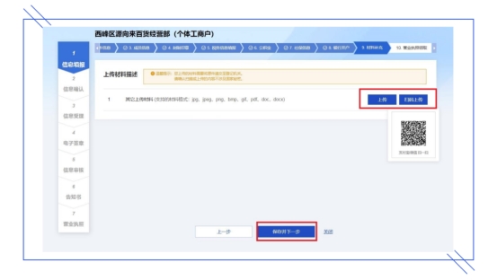22.在“材料补充”页,上传(可扫码上传)房产证明(不动产证、已备案的房屋买卖合同、街办村组开具的证明信等)、租赁合同等材料,有转租情形的,还须上传转租合同(上传材料页数较多的,小编建议上传合并后的PDF格式文件)。