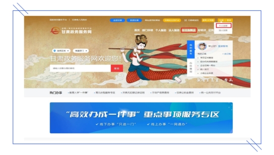 1.打开“甘肃政务服务网”,使用身份证件进行“个人注册”。