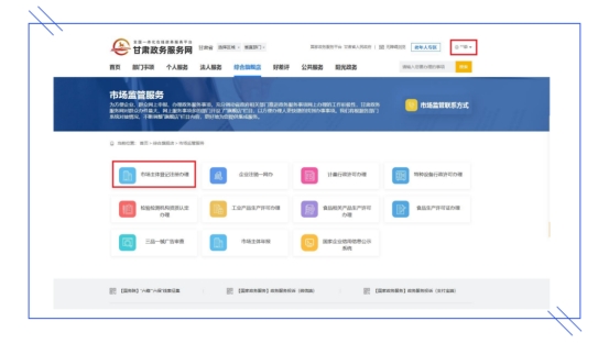 2.使用“个人注册”的帐号,登录“甘肃政务服务网”,选择“综合旗舰店”,“市场主体登记注册办理”。