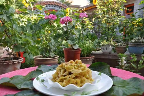 又名烫面饼子。刚出锅的饼子金黄焦脆,使人馋涎欲滴,但这时还不能吃,最关键的一步是揉,刚出锅的煎饼挺括,趁热用双手揉捏后,散开成条块状,似一团破碎的布片。饼子焦黄的硬皮,薄如蝉翼;入口,脆爽;一嚼,还会有轻微的咯吱声。不带硬皮的部分柔中带劲,很有嚼头。
