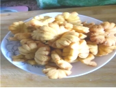 3.油饼 油饼是由精细小麦粉发面之后,擀成稍薄的圆饼,顺势在中间挖个小眼。有的地方是直接切一刀,放在滚开的胡麻油锅中,三翻一转圈之后,熟了。外黄金亮,里嫩外酥,既用于祭祀,也用于春节走访亲戚。 渭源人做油饼,阵势浩大,而制作春节时用的油饼,更多些忌讳。节前会选取固定的一天,也可以让男人参与其中,事先会在油锅中投入一枚钱币,整个制作过程外人会自动回避,可能是以前比较困难,害怕别人吃吧,久而久之,竟成风俗,人人皆知。