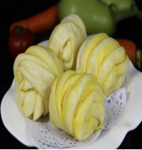 4.干面馒头 锹甲铺地处丝绸南路,经316国道穿村而过。1958年前有10余家车马店,一般小客店几乎家家都是。在汽车未成主要交通工具前,马车、牛车、步行的客商,都爱在这儿休息吃饭,住店。每到傍晚,灯下长条桌上,少不了几扇笼屉,或一个个白得耀眼的馒头模型。 馒头的制作工艺有严格要求。 面粉磨制:所用粮食必须是北山小麦,川区与南山麦子决不采用。由于土质关系,北山麦颗粒饱满,含铁质等微量元素丰富。磨面时,先拉珍子去皮,讲究面粉白净程度。面粉要求倒二八或倒三七的丝箩面,只取20%或30%的头等麦粉,用料之精可想而知。 发酵起面与其他蒸烤烙烫食品无区别,在和面擂面时用蓬灰作碱,揉擂时干面中略微拌点胡麻油。使馒头有股清香味,总体揉面的时间少,单个馒头的揉制时间多,不断擩进干面,馒头蒸熟后形成千层。所含水分没有其他馒头那么多,也没有那么虚煊,就是所谓干面擂油过程,这馒头也被人称“干面馒头”。 蒸笼全是直经二尺大的,有四层。火满上笼的时候,蒸馒头的主男或主妇要在灶龛前焚香磕头,一是求神,二是估算时间。习俗蒸馒头时忌生人进灶房,家人如外出归来的,也不能入厨。