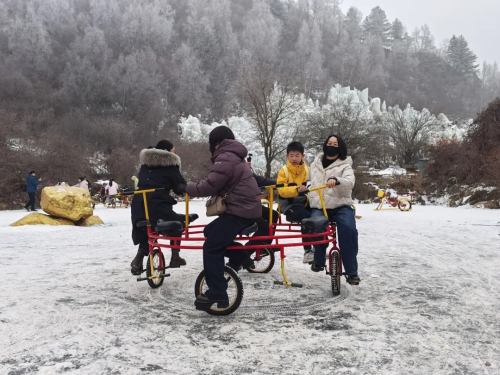 在景区设置的“福满渭河源”写春联专区,本地书法爱好者现场书写春联、福字,免费向游客赠送,为前来的游客送上新春祝福。游客们捧着墨迹未干的春联,脸上洋溢着幸福的笑容。当地戏曲表演团队搭台献艺,铿锵的锣鼓配着悠扬的唱腔,让游客在游览山水之余,感受到渭河源景区接地气、有温度的春节氛围。 除此之外,渭河东源的冰雪游也备受热捧。凭借小众秘境的高颜值冰雪盛景强势出圈,自驾游客与团队游客络绎不绝,单日客流屡创高峰。步入景区,白雪皑皑的山峦与晶莹剔透的冰瀑相映成趣,雪地摩托车在雪原上驰骋,雪道上欢笑声此起彼伏,雪地自行车、冰车、冰陀螺等一个个冰雪游乐项目前排起了长队,来自周边市县的冰雪爱好者们在这里尽情释放激情,享受高品质的冰雪盛宴。 火热的冰雪游热度持续辐射周边,带动农家乐餐饮、特色农产品销售节节攀升,附近的农家乐里座无虚席,当地土特产销售红火,真正实现“景区兴、乡村旺、百姓富”的文旅联动增收效应,尽显渭源冬日旅游的独特魅力与澎湃活力。