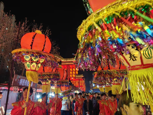 当非遗从展演台走进日常,文化传承便有了更具象的载体。莲峰高烨社火凭借独特的艺术魅力,从山乡走向都市,从线下演变为线上热点,成为这个春节最具辨识度的文化符号之一。在兰州老街的古街长巷,来自渭源县莲峰镇的高烨社火队伍,身着传统彩服,手持竹扎纸糊高烨灯,火光闪烁,灯影流转。头顶的高烨灯如盛开的矩形莲花,在鼓点的节奏中翩然舞动,为省城人民送去渭水源头的独特新春祝福。